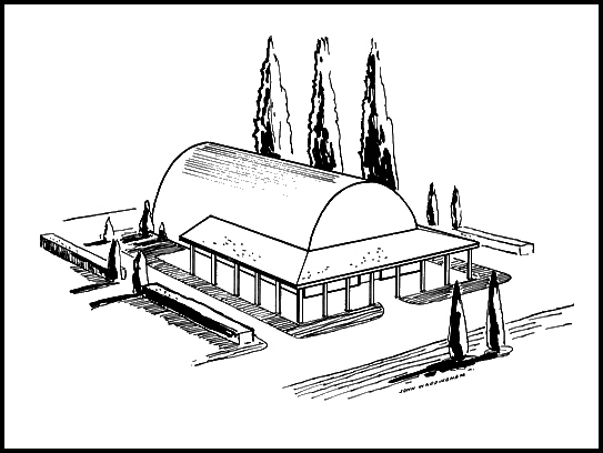 This type of building was selected mainly from an economical aspect. Construction will start sometime during the winter months and the structure will be in readiness for the Spring Show. Again it will be necessary to call on volunteer help from members of the Portland Chapter to offset additional expenses by helping with the actual construction work. The Society has had several "drives" for contributions in an attempt to raise funds, also the entire proceeds from the Portland Chapter Shows have been turned over for this purpose, but the entire amount has not been fully raised; however the work contemplated for this year will encompass the barest essentials. As more funds are raised from future shows and otherwise, the entire building can be lengthened in 8 foot sections and additional improvements can be made, such as enclosing the Exhibition Unit in glass.